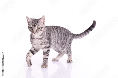 Kleine Junge Graue Gestreifte Katze In Bewegung Stock Photo Adobe Stock