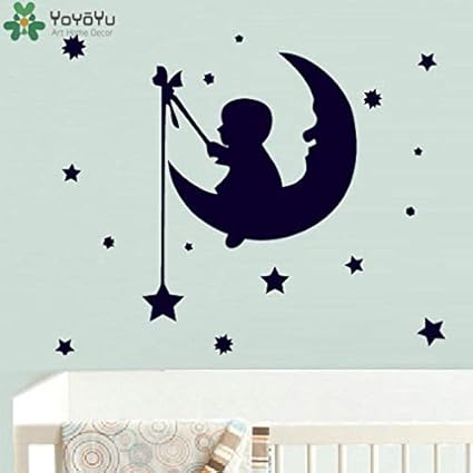 Ganlanshu Baby Schlafzimmer Wandtattoo Mond Halbmond Muster Vinyl Wandaufkleber Kinderzimmer Junge Angeln Niedlich Dekoration 42 Cm X 35 Cm Amazon De Kuche Haushalt