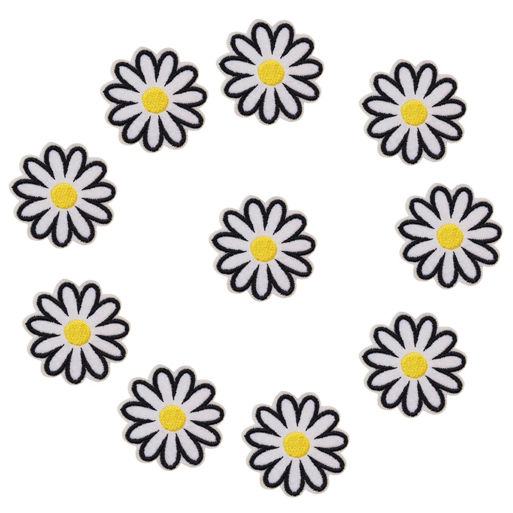 Xunhui Aufnaher Weisse Blumen Ganseblumchen Zum Aufbugeln Basteln Bestickt Fur Kleidung Dekoration10 Stuck Basteln Malen Nahen Applikationen