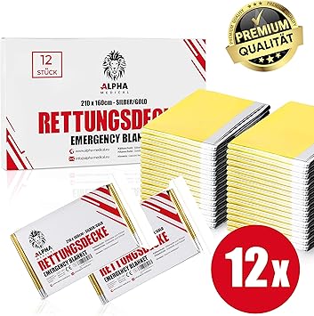 Produkte Fur Arbeitsschutz Sicherheit 210 X 160cm Camping Und Outdoor Survivalaktivitaten Alpha Medical Einfuhrungsangebot Notfalldecke Fur Erste Hilfe Set Zum Wandern 12 Stuck Premium Rettungsdecke Gold Silber Im Vorteilspack Gewerbe Industrie