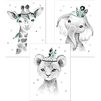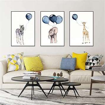 Frechdax 3er Set Kinderzimmer Poster Baby Bilder Din A4 Waldtiere Safari Afrika Tiere Tierposter Luftballon Ballon Babybilder Babys Bilder Babyzimmer Ideen