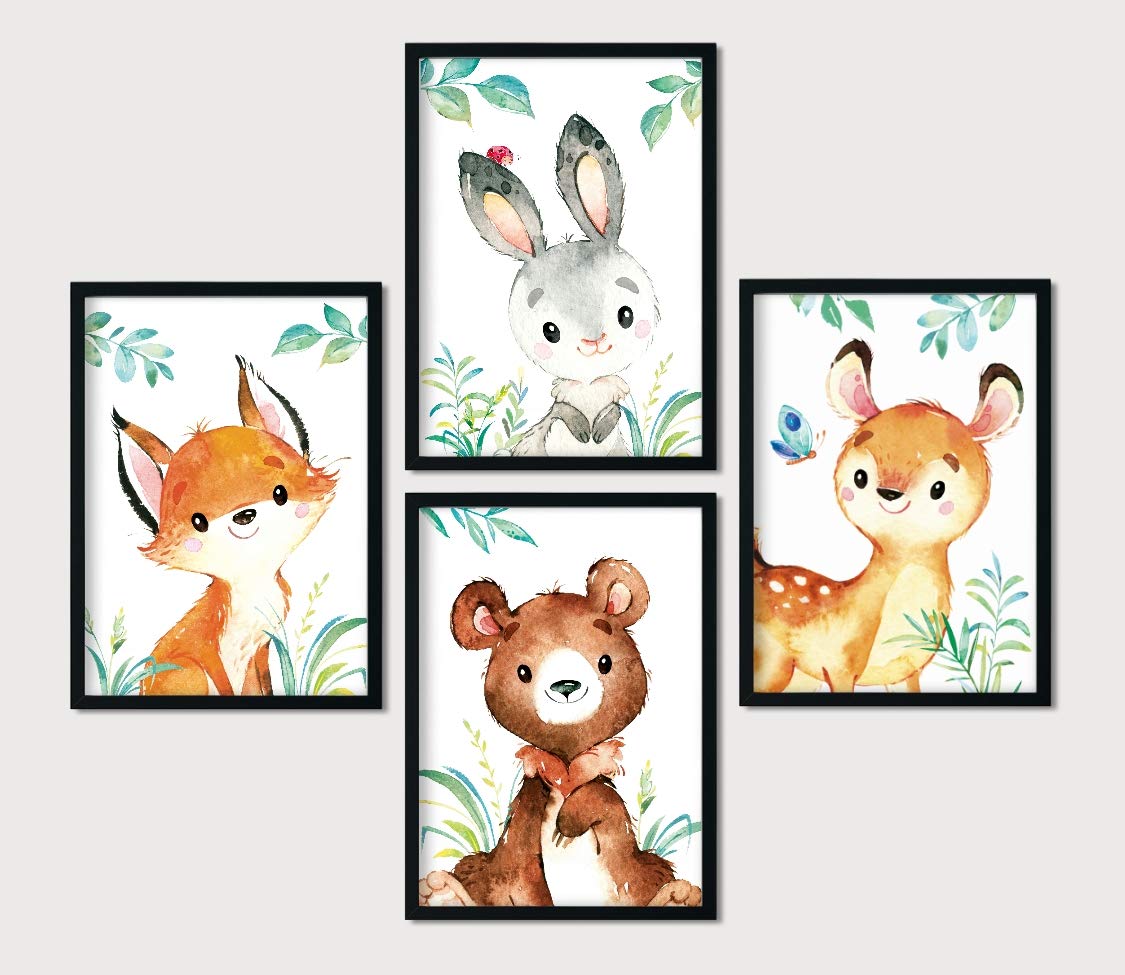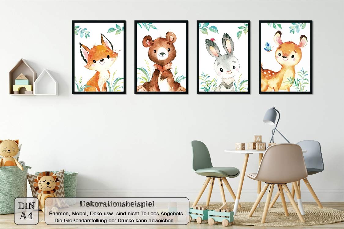 Lalelu Prints 4er Set Poster Kinderzimmer Bilder Deko Junge Madchen Din A4 Waldtiere Reh Bar Fuchs Hase Babyzimmer Baby I Bilder Kinderbilder Babybilder Wandbilder Kinderzimmer Dekoartikel Fur Kinderzimmer