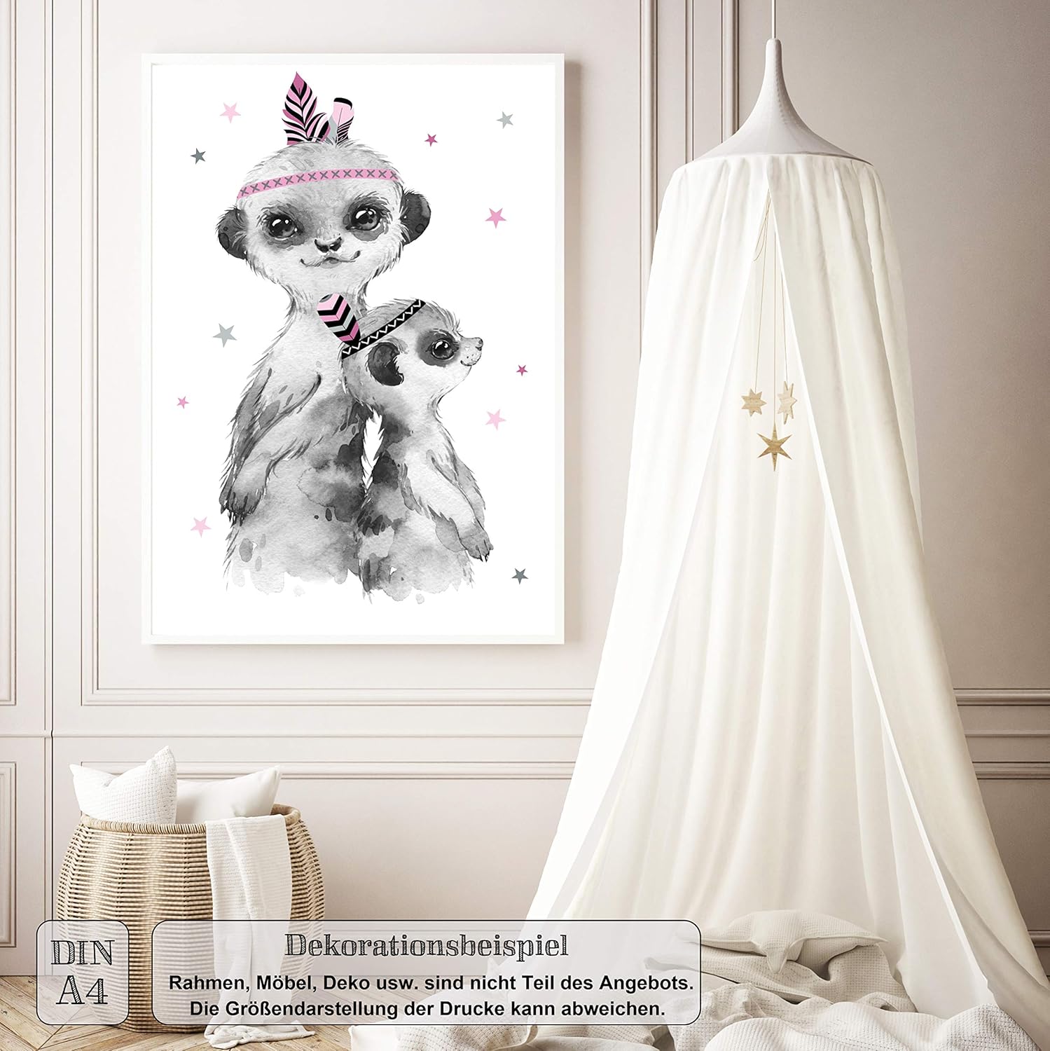 Lalelu Prints 6er Set Poster Kinderzimmer Bilder Boho Rosa Grau Dschungel Tiere Indianer Deko Madchen Din A4 Giraffe Elefant Lowe Zebra Affe Erdmannchen Kinderbilder Babyzimmer Babybilder Gerahmte Bilder Poster Dekoartikel Fur Kinderzimmer