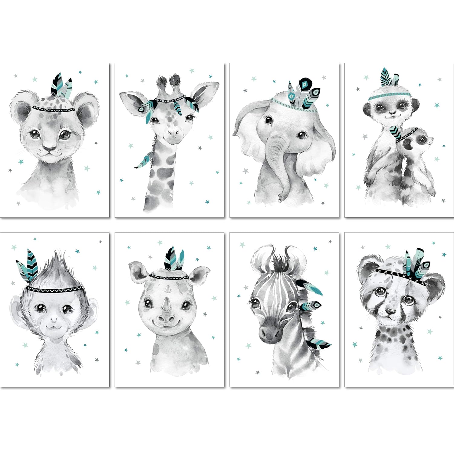 Indianer 8er Set Mint Grau Lalelu Prints Bilder Kinderzimmer Mint Poster Deko Dschungel Tiere Indianer Din A4 Giraffe Elefant Lowe Zebra Kinderbilder Babyzimmer Babybilder Wandbilder Kinderzimmer Com Baby
