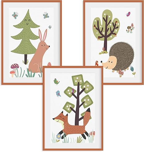 Happywords 3er Bilder Set Din A4 Ohne Bilderrahmen Bilder Fur Kinderzimmer Bilder Babyzimmer Junge Madchen Baby Kinder Poster Tiere Kinderbilder Kinderzimmer 3er Set Waldtiere Retro Amazon De Kuche Haushalt