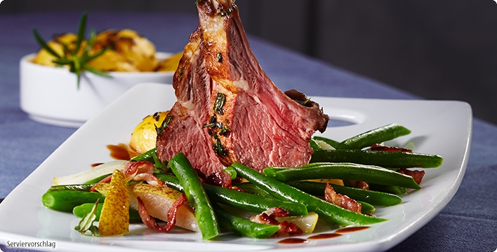 Lammkarree Mit Balsamico Sauce Und Speckbohnen Aldi Rezeptwelt